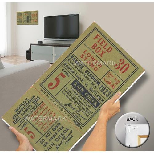 Officially licensed by MLB Mega Tickets are cutting-edge wall art. They are created from authentic game tickets enlarged 500% printed on archival canvas and professionally stretch-mounted. Perfect for autographs. Overall Size: 16(W) x30(H) x0.75(D).