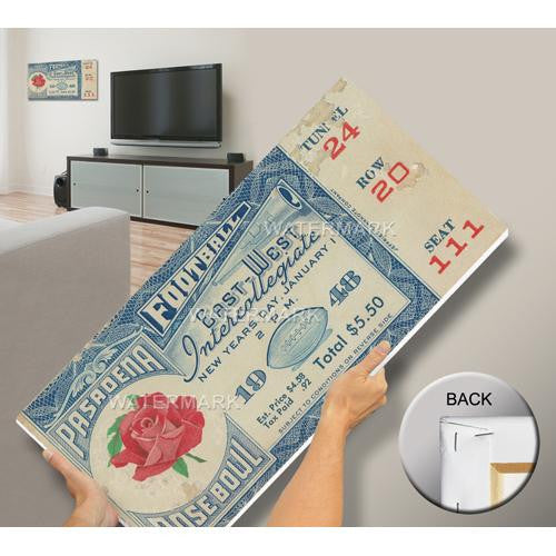 Officially licensed by CLC's College Vault Mega Tickets are cutting-edge wall art. They are created from authentic game tickets enlarged 500% printed on archival canvas and professionally stretch-mounted. Perfect for autographs. Overall Size: 15(W) x31(H) x0.75(D).