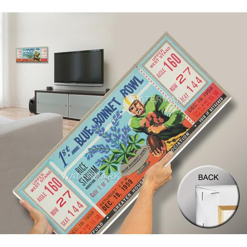 Officially licensed by CLC's College Vault Mega Tickets are cutting-edge wall art. They are created from authentic game tickets enlarged 500% printed on archival canvas and professionally stretch-mounted. Perfect for autographs. Overall Size: 13(W) x31(H) x0.75(D).