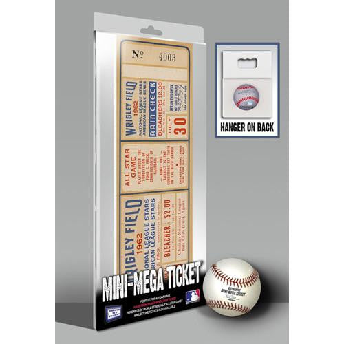 Held at Chicago's Wrigley Field this game was played July 30 and was the second All-Star Game played in 1962. The American League won 9-4 and the Angels Leon Wagner earned MVP honors. This 1962 All-Star Game Mini-Mega Ticket commemorates the occasion. Overall Size: 4 1/2 (W) x 14 (H) x 3/4 (D) Officially licensed by MLB Mini-Mega Tickets are made from authentic MLB tickets. Mini-Mega Tickets are approximately 200% larger than their original ticket size and printed directly on 1/4-inch thick rigid PVC board. They are perfect for autographs. Mini-Mega Tickets make great wall art as they include a flexible wall hanger on their back. *Product shown in packaging