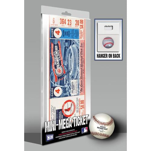 The 1967 World Series belonged to the Cardinals Bob Gibson who hurled three complete-game victories in Games 14and 7 over the Boston Red Sox. Gibson out dueled American League Cy Young winner Jim Lonborg in Game 7 who was pitching on two days rest. Lou Brock also made his mark for the champions as he hit .414 and stole seven bases. The victory marked the seventh World Series title for the Cardinals. This 1967 World Series Mini-Mega Ticket commemorates the title. Overall Size: 5 1/4 (W) x 14 (H) x 1/4 (D) Officially licensed by MLB Mini-Mega Tickets are made from authentic MLB tickets. Mini-Mega Tickets are approximately 200% larger than their original ticket size and printed directly on 1/4-inch thick rigid PVC board. They are perfect for autographs. Mini-Mega Tickets make great wall art as they include a flexible wall hanger on their back. *Product shown in packaging