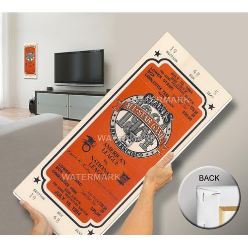 Officially licensed by MLB Mega Tickets are cutting-edge wall art. They are created from authentic game tickets enlarged 500% printed on archival canvas and professionally stretch-mounted. Perfect for autographs. Overall Size: 13(W) x31(H) x0.75(D).
