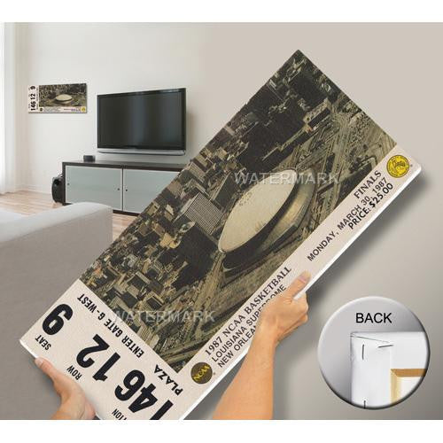 Officially licensed by CLC's College Vault Mega Tickets are cutting-edge wall art. They are created from authentic game tickets enlarged 500% printed on archival canvas and professionally stretch-mounted. Perfect for autographs. Overall Size: 14(W) x32(H) x0.75(D).