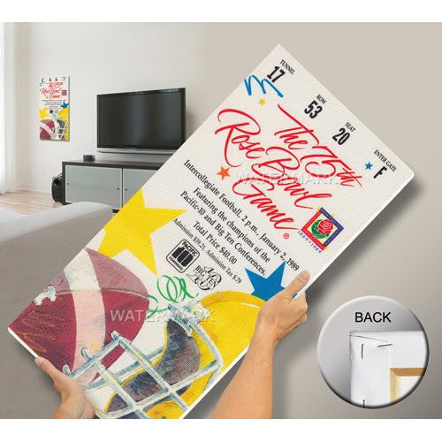 Officially licensed by CLC's College Vault Mega Tickets are cutting-edge wall art. They are created from authentic game tickets enlarged 500% printed on archival canvas and professionally stretch-mounted. Perfect for autographs. Overall Size: 16(W) x31(H) x0.75(D).