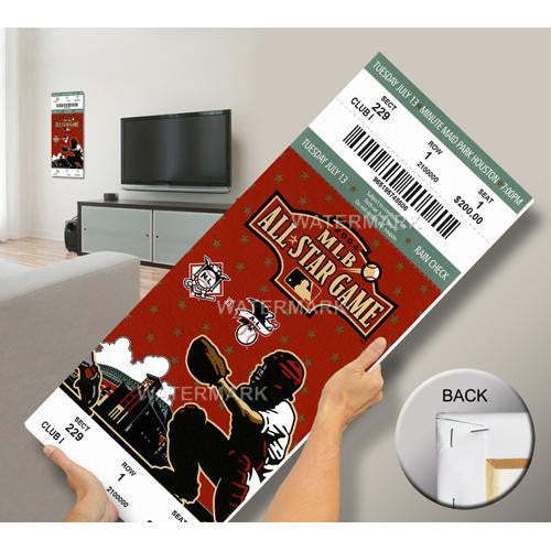 Officially licensed by MLB Mega Tickets are cutting-edge wall art. They are created from authentic game tickets enlarged 500% printed on archival canvas and professionally stretch-mounted. Perfect for autographs. Overall Size: 14(W) x33(H) x0.75(D).