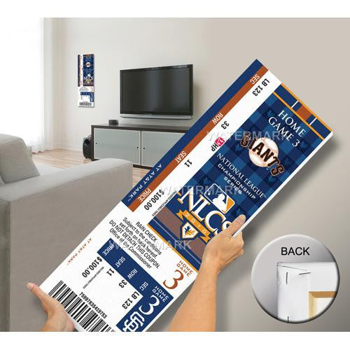 Officially licensed by MLB Mega Tickets are cutting-edge wall art. They are created from authentic game tickets enlarged 500% printed on archival canvas and professionally stretch-mounted. Perfect for autographs. Overall Size: 11(W) x32(H) x0.75(D).