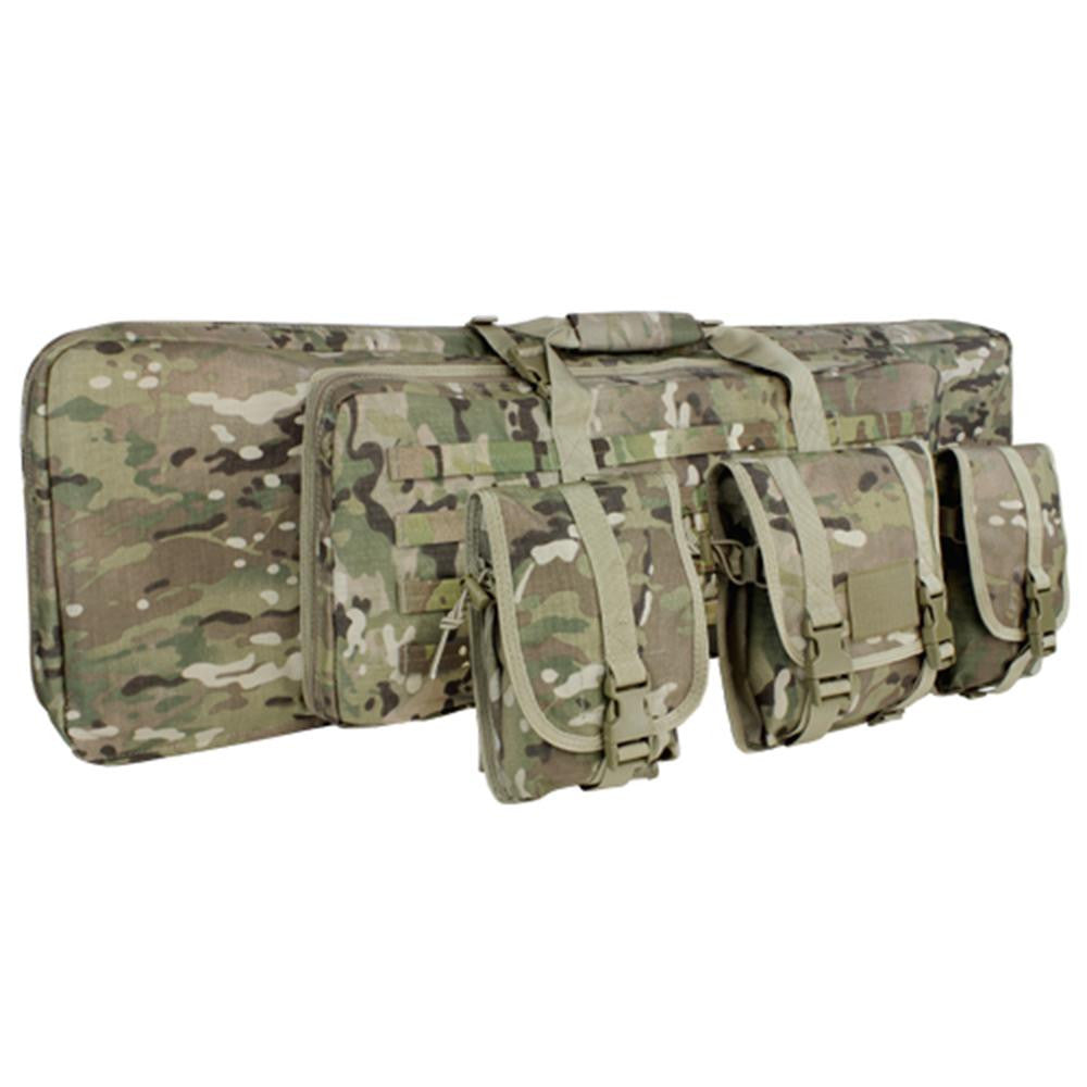 The Condor double rifle cases are designed to carry two primary weapon with the addition 26in compartment for pistol optic SMG or other accessories. It comes with 3 modular pouches that combines to hold up to 14 M4 magazines. The padded divider separates the two rifles and the entire case is fully padded for maximum protection. The double rifle case are available in 36in (151) and 42in (152).