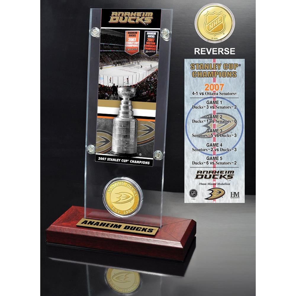 Anaheim Ducks Stanley Cup Champions Ticket and Bronze Coin Acrylic Display