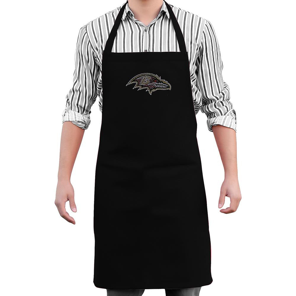 Look fabulous while serving up victory at your homegating event! This heavy duty cotton/poly blend apron showcases your favorite team in team color and hundreds of crystals.One size fits most.