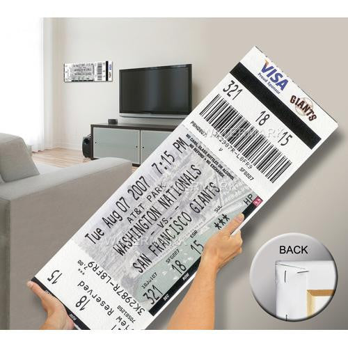Officially licensed by MLB Mega Tickets are cutting-edge wall art. They are created from authentic game tickets enlarged 500% printed on archival canvas and professionally stretch-mounted. Perfect for autographs. Overall Size: 12(W) x34(H) x0.75(D).