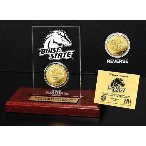 Limited Edition of 5000!e The 24KT Gold flashed University Logo Coin is featured in a 3.5in x 5in acrylic engraved with the School Commemoration. The individually numbered 39mm Minted Gold flashed Coin and engraved acrylic is delivered with a wood base that includes an engraved nameplate as well each is accompanied by a Certificate of Authenticity. Officially licensed by the CLC and proudly made in the USA by The Highland Mint!