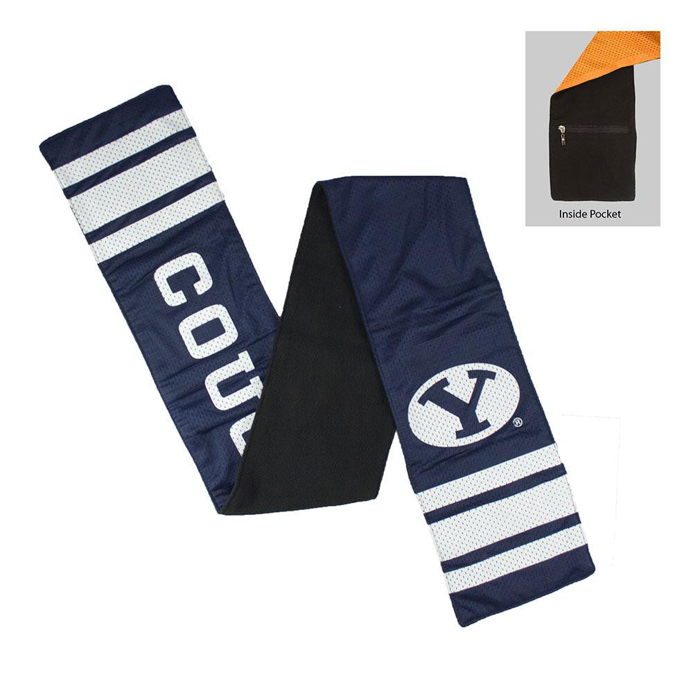 "Stay warm, and stylish, when supporting your team with this fleece lined jersey scarf. Measures 60 by 7. 100% Polyester."