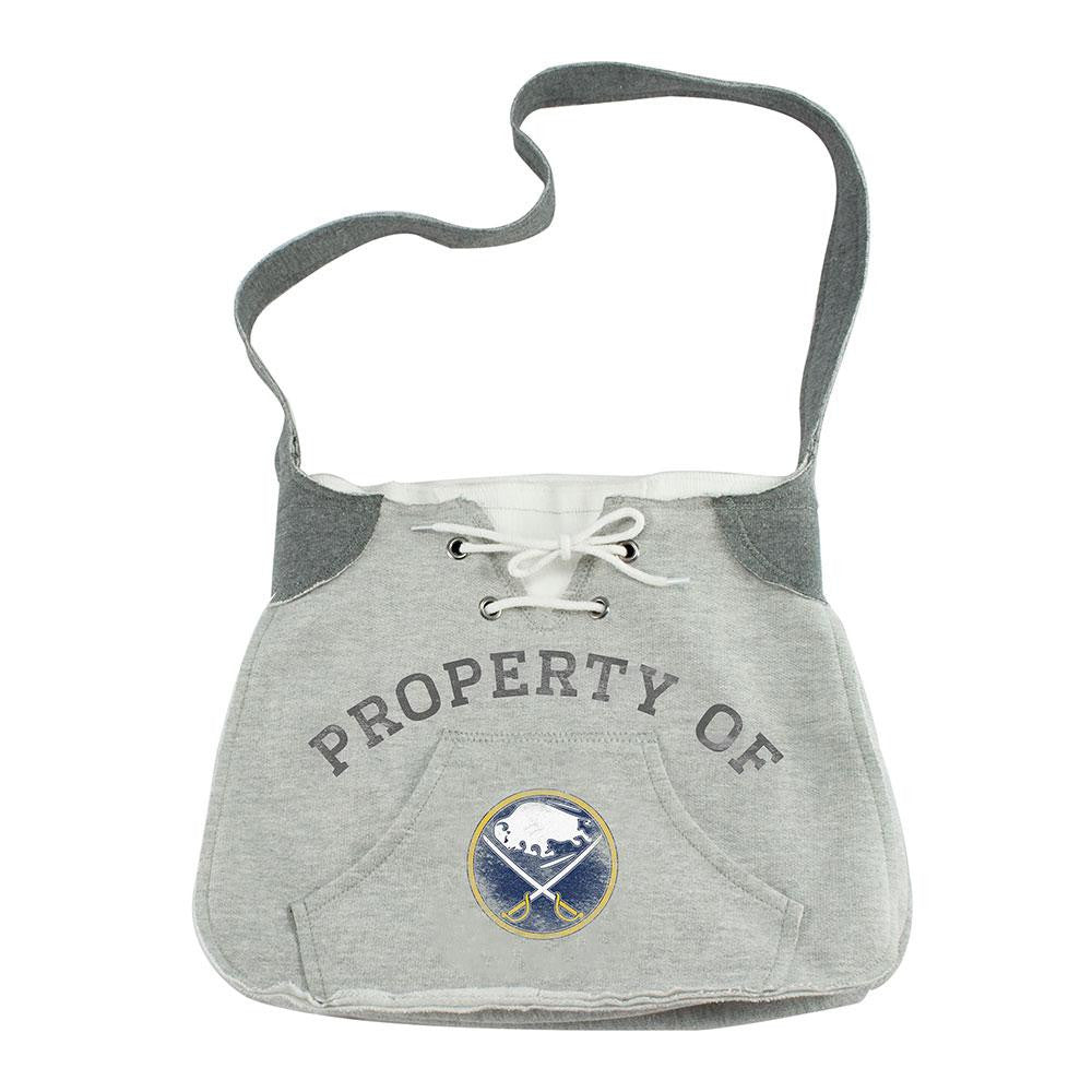 "Little Earth has added the new shape of their Hoodie Sling to their popular line of Hoodie Bags. These bags are inspired by the classic look of hoodie sweatshirts. Our Hoodie Sling is an unstructured bag featuring stylish details like metal grommets, lacing and a working kangaroo pocket. Sling is heather gray with darker gray strap and bottom. Printed with your favorite team logo on front kangaroo pocket. Secure snap closure keeps belongs secure. Measures 15.5 x 4 x 12."
