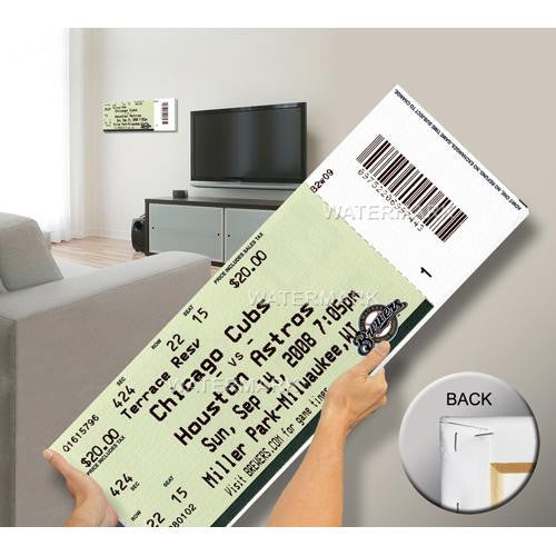 Officially licensed by MLB Mega Tickets are cutting-edge wall art. They are created from authentic game tickets enlarged 500% printed on archival canvas and professionally stretch-mounted. Perfect for autographs. Overall Size: 12(W) x33(H) x0.75(D).