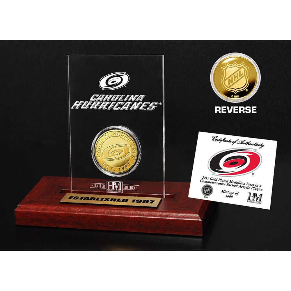 Limited Edition ofe5000!e The 24KT Goldeflashed Team CommemorativeeCoin is featured in a 3.5in x 5in acrylic engraved with theeNHL Shield Logo on the reverse of the coin. The individually numbered 39mm Minted Goldeflashed Coin and engraved acrylic is delivered with a wood base that includes an engraved nameplate as well each is accompanied by a Certificate of Authenticity. Officially Licensed by the NHL.
