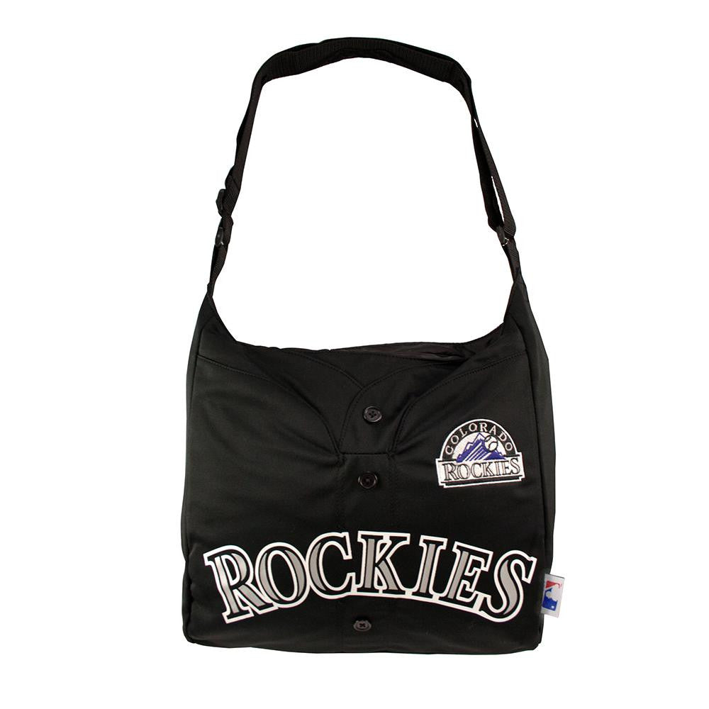 Jersey fabric and pro-styling will have you grabbing for this tote every time. Team colored tote with screen printed team logo. Measures 15 x 4 x 14 and features zipper closure and two slot inside pockets. Adjustable strap allows this purse to be worn at the shoulder or across the body.