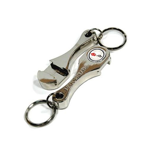 "Each ConRod Keychain/Opener is made from all metal construction and is a combination Key Chain and Bottle Opener. Featuring bright chrome plating, realistic connecting rod, heavy duty epoxy dome covered art, and is two inches long."