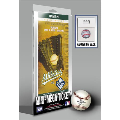 On May 9 2010 Dallas Braden threw MLB's 19th Perfect Game. Braden accomplished the feat on 109 pitches while striking out six Tampa Bay Rays. It marks the 11th No Hitter in Athletics history and second perfect game as Catfish Hunter did it on May 81968. This Mini-Mega Ticket commemorates the historic occasion. Overall Size: 5 1/2 (W) x 14 (H) x 1/4 (D) Officially licensed by MLB Mini-Mega Tickets are made from authentic MLB tickets. Mini-Mega Tickets are approximately 200% larger than their original ticket size and printed directly on 1/4-inch thick rigid PVC board. They are perfect for autographs. Mini-Mega Tickets make great wall art as they include a flexible wall hanger on their back. *Product shown in packaging