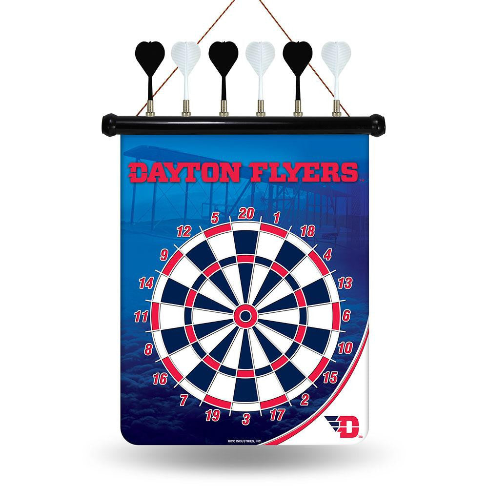 "Can't wait for the big game to start? Easily pass the time with this Rico NCAA dartboard set. It comes with six plastic darts that are tipped with powerful magnets, allowing them to easily cling to the ready-to-hang fabric dartboard. This officially licensed team magnetic dart board is the perfect addition to any game room or fan cave. Colorful team graphics adorn the board. Made in USA."