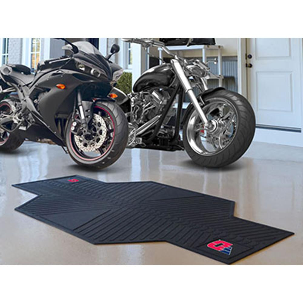 "Show off your team pride with Sports Licensing Solutions' motorcycle mats. You can protect your garage floor from dirt, debris, and oil. Grip-style backing keeps mat in place while catching and holding liquids. Mat is only 5/16 thick!"