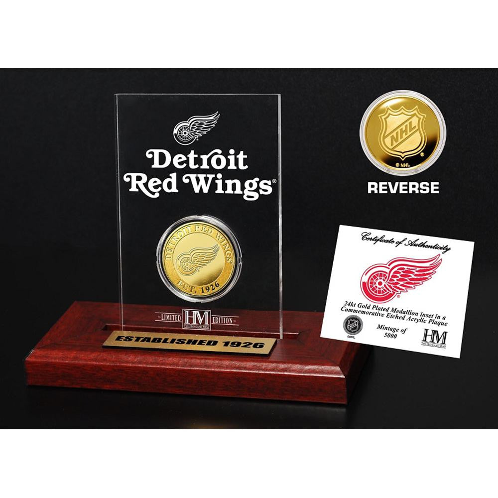 Limited Edition ofe5000!e The Goldeflashed Team CommemorativeeCoin is featured in a 3.5in x 5in acrylic engraved with theeNHL Shield Logo on the reverse of the coin. The individually numbered 39mm Minted Goldeflashed Coin and engraved acrylic is delivered with a wood base that includes an engraved nameplate as well each is accompanied by a Certificate of Authenticity. Officially Licensed by the NHL.