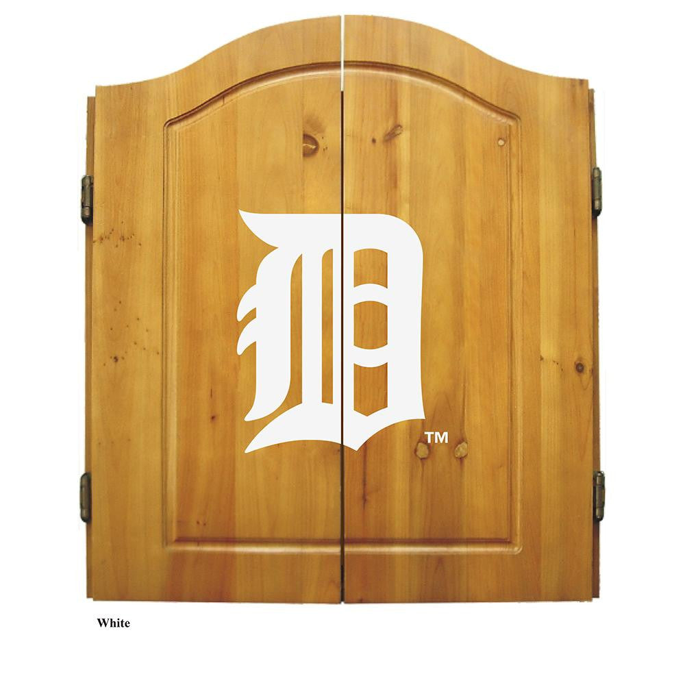 "The MLB Dart Board Cabinet Set is a great gift idea to give to a sports fan. It comes with all the equipment needed to play the game of darts. It features a beautiful wood cabinet that displays a large team logo right on the center of doors, contains 6 MLB steel tip darts so you can play against another team, a regulation size bristle dart board and 2 scoreboards with chalk and eraser so you can keep score. Enjoy the game of darts with family and friends before or after a game and represent your favorite team with the officially licensed MLB Dartboard Cabinet Set. Dart Set Includes: Solid Pine Cabinet with Large Silk Screened Team Logo on Doors, 3 Black, 3 Silver Darts with Team Name Printed on Barrels and MLB League Flights, Regulation Size Bristle Dart Board, 2 Scoreboards on Each Inner Door with Small Team Logos Printed on Top Chalk and Eraser and Mounting Hardware Included. Cabinet Dimensions: 25 1/4 L X 21 1/2 W X 3 5/8 D"