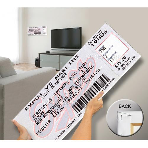 Officially licensed by MLB Mega Tickets are cutting-edge wall art. They are created from authentic game tickets enlarged 500% printed on archival canvas and professionally stretch-mounted. Perfect for autographs. Overall Size: 12(W) x32(H) x0.75(D).