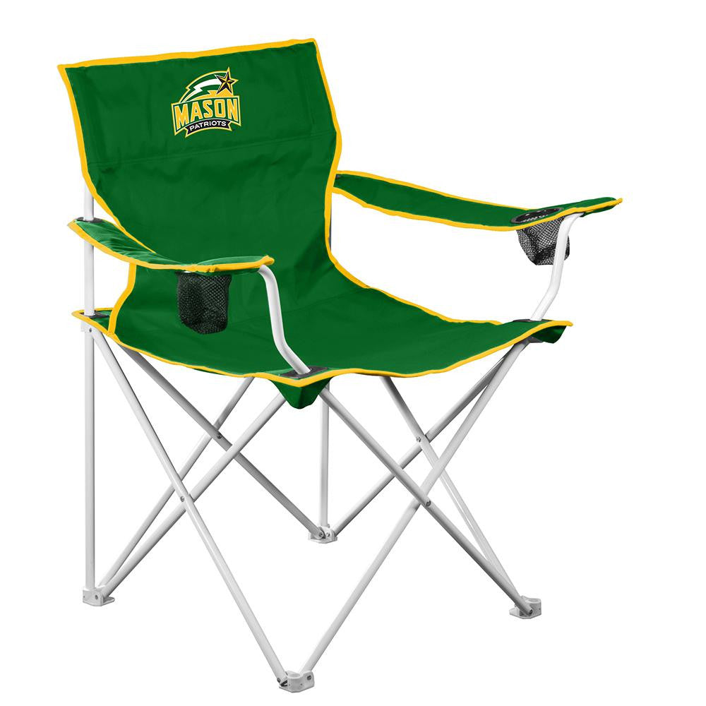 Seating area measures 23.5 x 23.5 with double layered 600 denier polyester. Features two adjustable arm rests with cup holders on each arm. Logo featured on the front and back of headrest and the carrying bag. Seats up to 275 lbs.