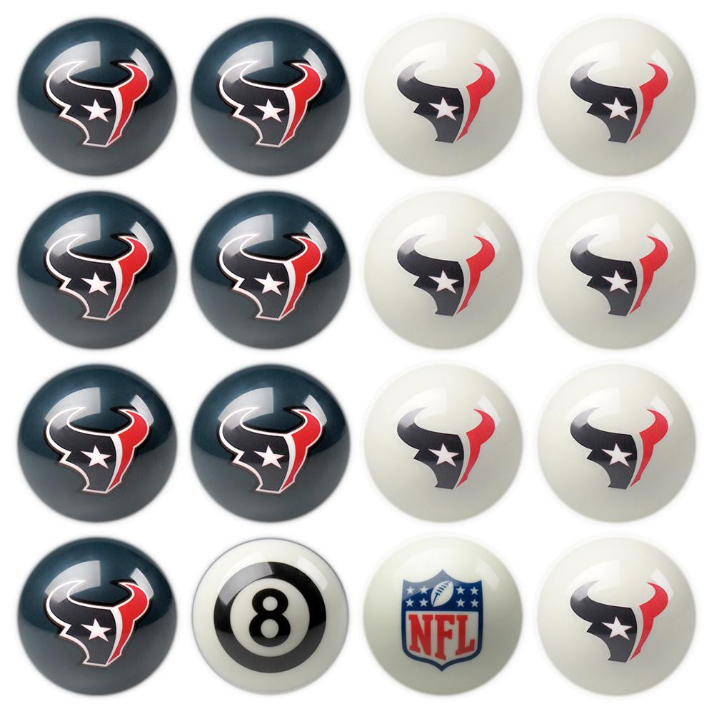 This NFL Home Vs. Away Pool 8-Ball Set brings the game from the grid-iron to your pool table! All NFL team logos and colors are precisely reproduced onto each Belgian Aramith Billiard Ball. Belgin Aramith balls are considered the finest in the industry and have been the BCA's billiard ball sets of choice for decades. Makes a unique gift for the NFL fan in your life. Features true Belgian Aramith 2 1/4 tournament quality billiard balls (finest in industry) 7 balls designed in primary team colors with team logo 7 balls deigned in secondary team colors with team logo traditional white cue ball is updated with an NFL shield 8-ball displays referee-style stripes and digitally reproduced team graphics to reduce fading or cracking. PLEASE NOTE: These balls are designed for games such as 8-ball that uses just solids and stripes. There are no numbers on the balls.