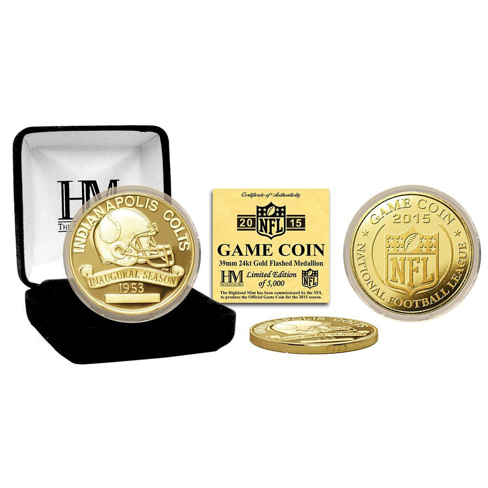 The game doesn?t start with out this coin! The Highland Mint presents the 2015 NFL game coins minted and flashed in gold and delivered in a 2.5 x 2.5 black velour jewelry box as well as an individually numbered certificate of authenticity. Each gold flashed coin is a limited edition of 5000. Officially licensed by the NFL amd proudly made in the USA by The Highland Mint!