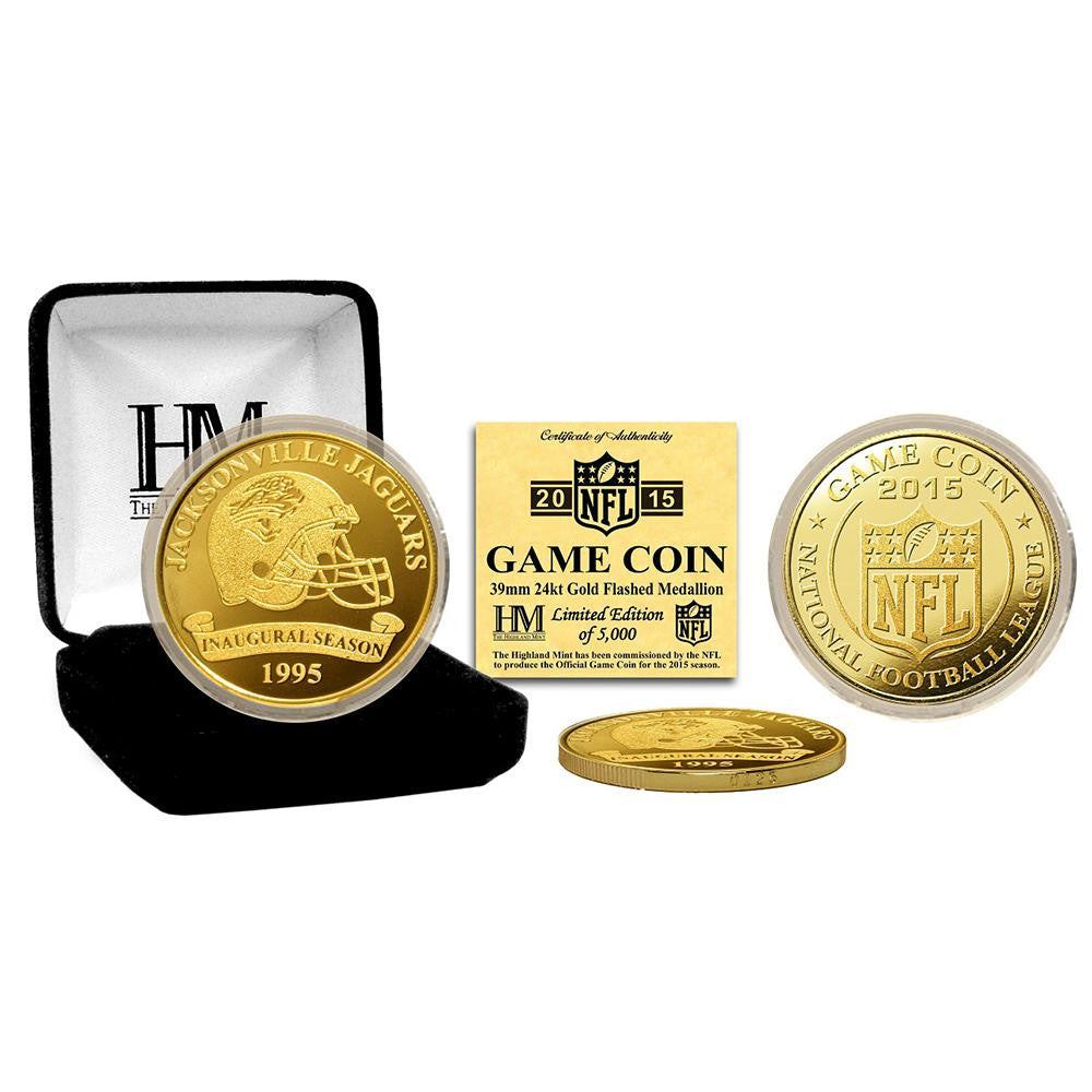 The game doesn?t start with out this coin! The Highland Mint presents the 2015 NFL game coins minted and flashed in gold and delivered in a 2.5 x 2.5 black velour jewelry box as well as an individually numbered certificate of authenticity. Each gold flashed coin is a limited edition of 5000. Officially licensed by the NFL amd proudly made in the USA by The Highland Mint!