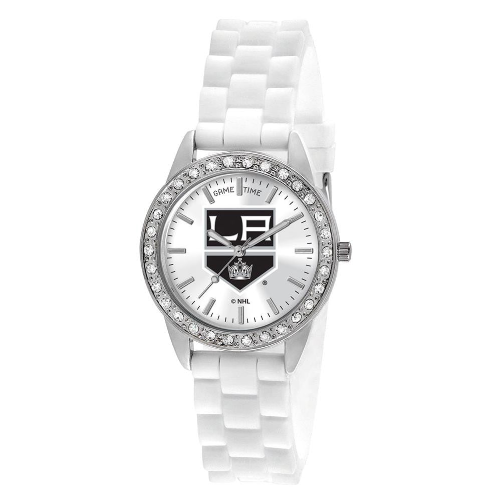 Hopefully your team's hotter than this frosty watch from Game Time! The Women's Frost Watch feature's an official team logo. Your team's color logo will stand out beautifully surrounded by the silver tone case and white silicone band. This is a must have for the female fan that's passionate about her sports team! Features: Stainless steel caseback. Silicone strap. Japan quartz movement. Sunray dial. Case size: 38mm. Water resistant to 3 ATM (99 ft.). Limited lifetime warranty. Officially licensed.