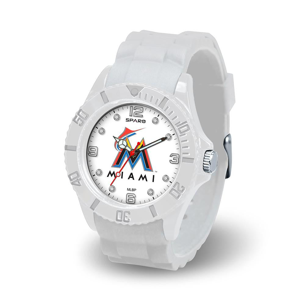 The Sparo Cloud Watch has a supple rubber sports strap with a sports buckle. Scratch resistant mineral crystal lens. Precision quartz movement. Silver numbers and florescent hands make it easy to read. The back is stainless steel and the watch is water/shock resistant up to 2 ATM's. Limited Lifetime Warranty. Officially licensed team logos and colors.