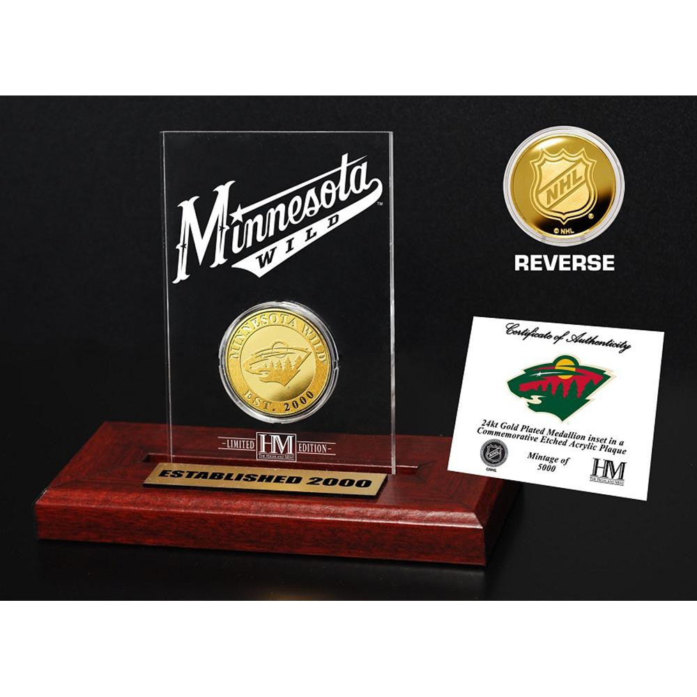 Limited Edition ofe5000!e The 24KT Goldeflashed Team CommemorativeeCoin is featured in a 3.5in x 5in acrylic engraved with theeNHL Shield Logo on the reverse of the coin. The individually numbered 39mm Minted Goldeflashed Coin and engraved acrylic is delivered with a wood base that includes an engraved nameplate as well each is accompanied by a Certificate of Authenticity. Officially Licensed by the NHL.