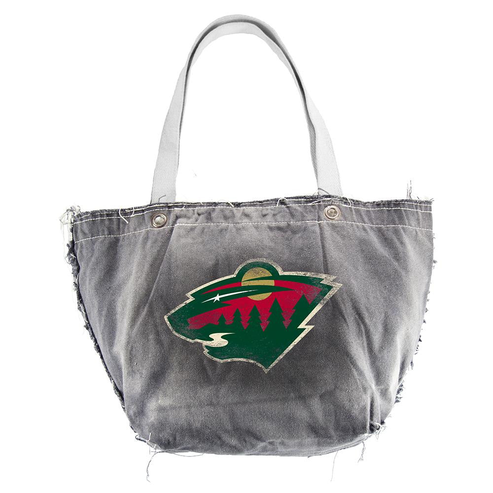 "Little Earth's Vintage Tote has all the qualities of the perfect pair of jeans in a purse. Hand distressed with metal grommet details and screen printed with a large faded team logo, the tote is stylish enough for the game and casual enough for every day. Ten and a half inch drop handles and an interior zip pocket add functionality."