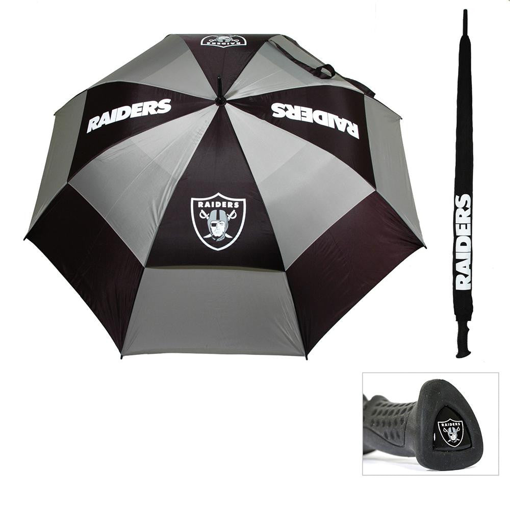 62 double-canopy umbrella with multi-colored panels and full color durable imprint. Includes an easy grip molded handle with team logo medallion and 1 touch auto-open button. Withstands strong winds.