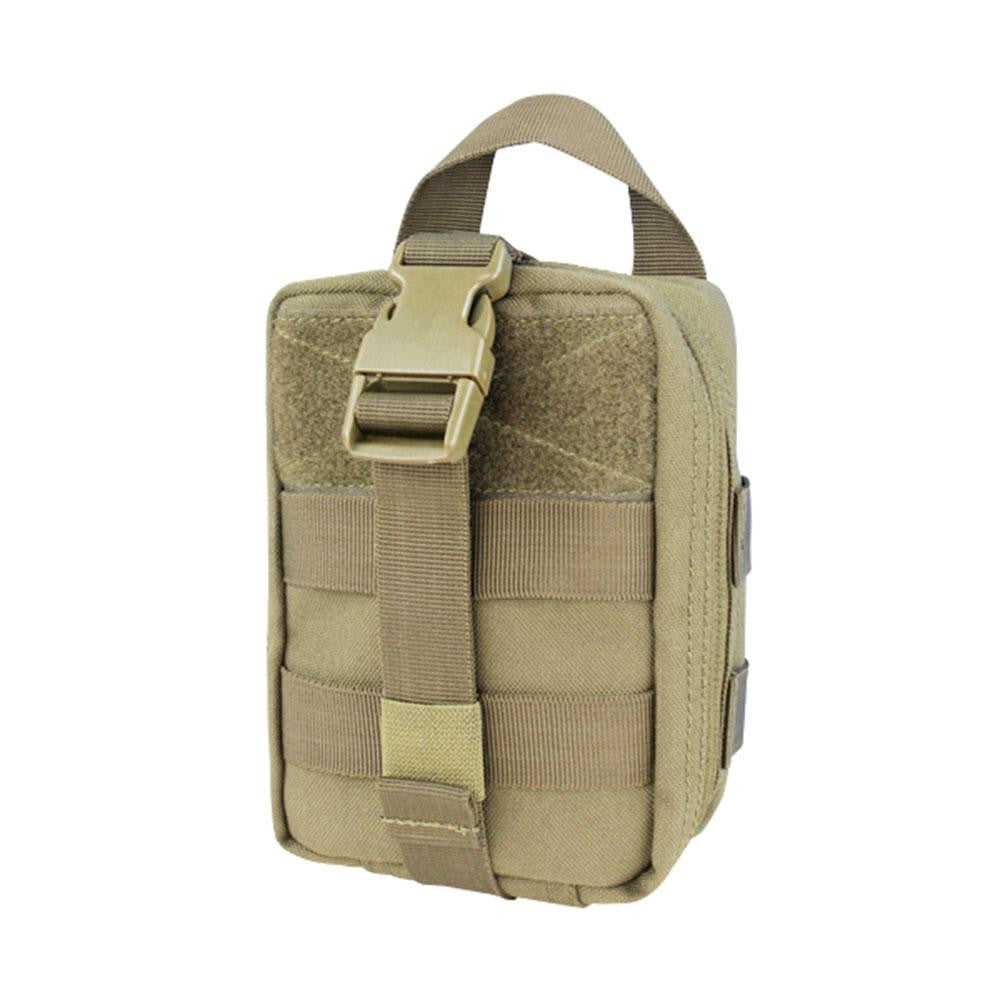 "The Condor Rip-Away EMT pouch carries all your 1st aid gear. The pouch is designed to be rip-away from the modular platform when needed, and the strap on the platform keeps it from falling off accidentally. (6.5H x 4W x 2D)"