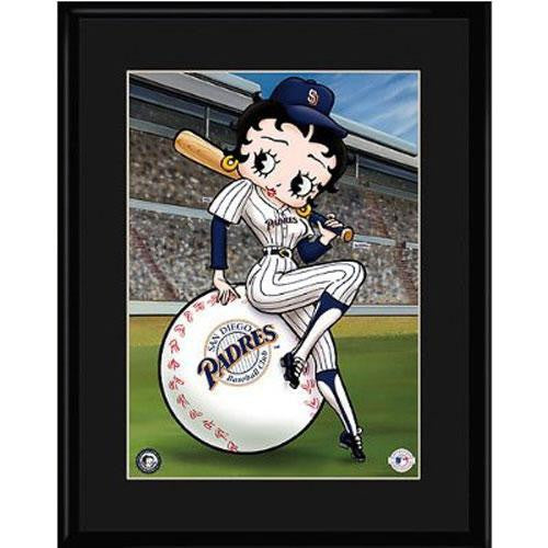 "This collectible lithograph from Toon Art titled Betty on Deck features Betty Boop dressed in an official MLB uniform . Each lithograph is limited to 5,000 pieces, includes a certificate of authenticity, and comes matted and framed."
