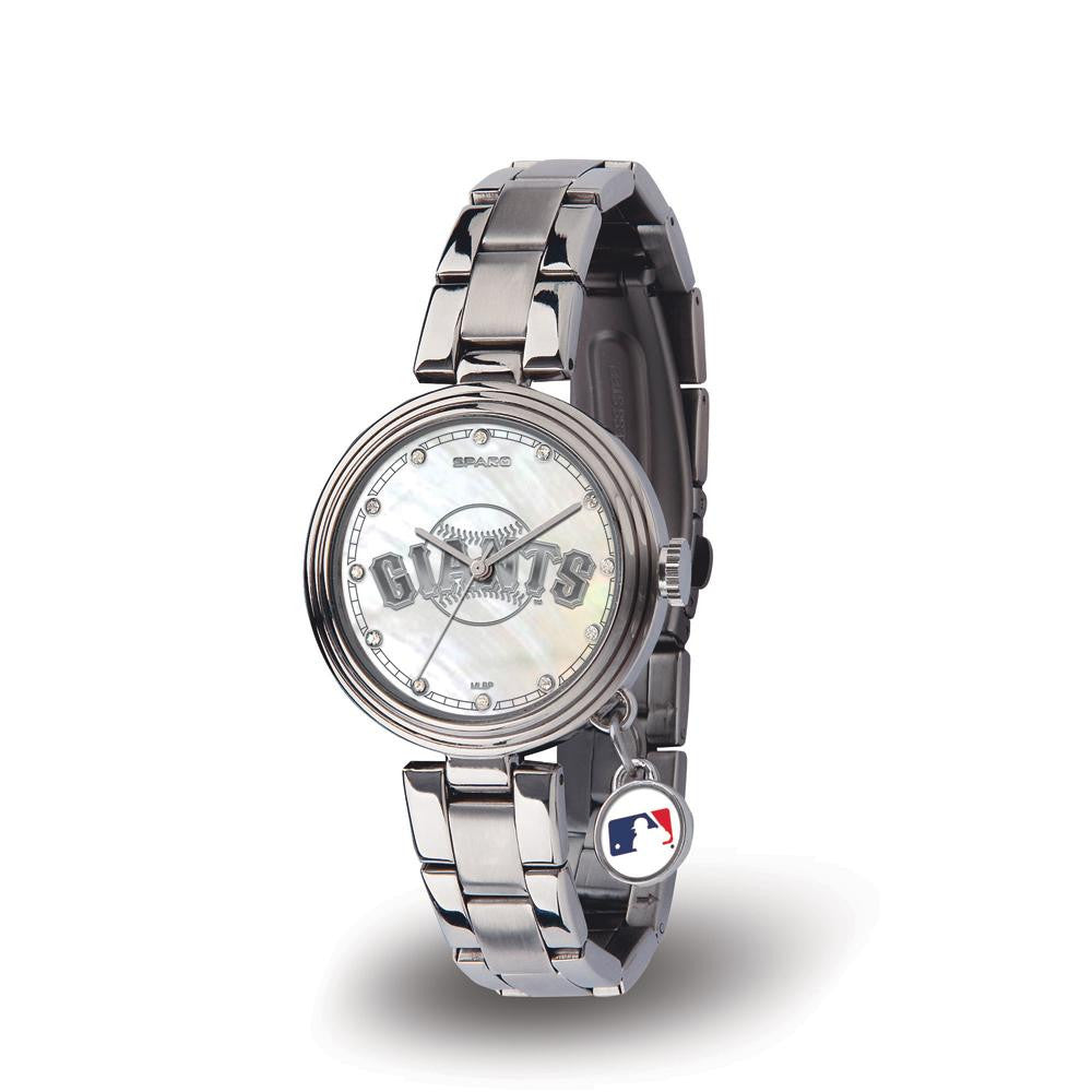 " Women now have a chance to show their team spirit in style with the Charm watch. The fashion foward piece has a team logo which includes, a silver tone inlay, a mother of pearl dial, and applied crystals. The Charm watch features a precisions quartz movement, stainless steel caseback and a scratch resistant mineral crystal lens. Its water and shock resistant to 3 ATM (99ft) and comes with a limited lifetime warranty."