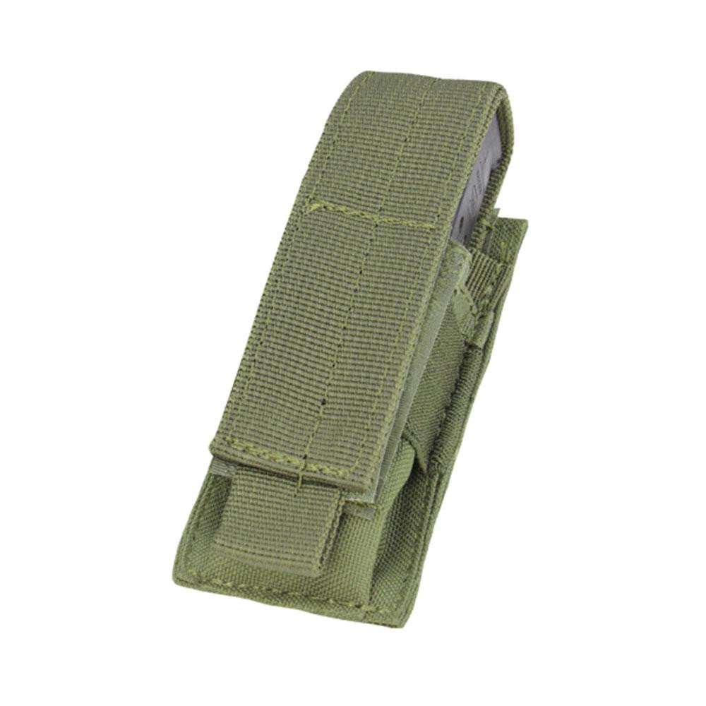 "The Condor Pistol Mag Pouch fits almost any pistol magazine. The adjustable flap also makes it a good pocket for knife, flashlights, mulit-tool....etc."