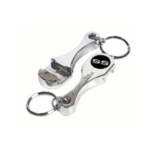 "Each ConRod Keychain/Opener is made from all metal construction and is a combination Key Chain and Bottle Opener. Featuring bright chrome plating, realistic connecting rod, heavy duty epoxy dome covered art, and is two inches long."