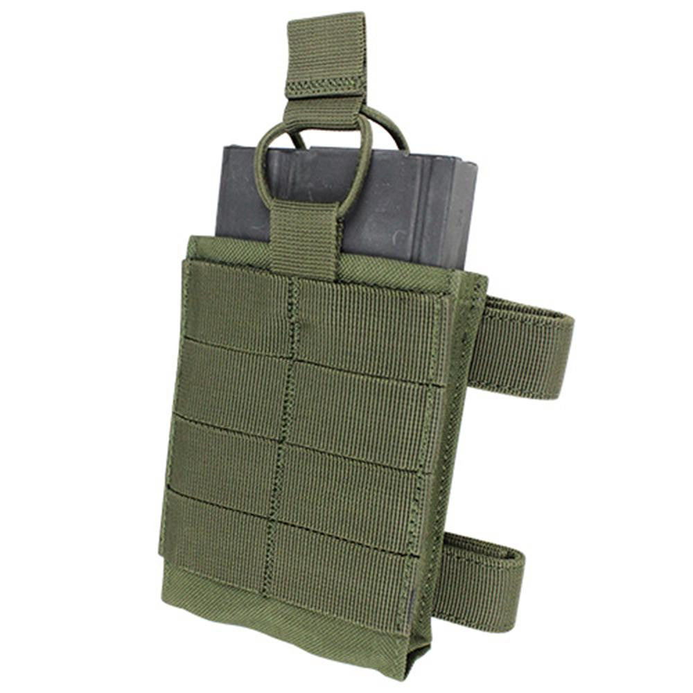 Open-top design with bungee retention. Versatile design for vertical or horizontal mount. Fits 223 and 308 (5.56 NATO and 7.62 NATO). Two 4 MOD straps included