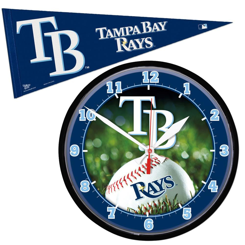 Tampa Bay Rays MLB Round Wall Clock and Pennant Gift Set