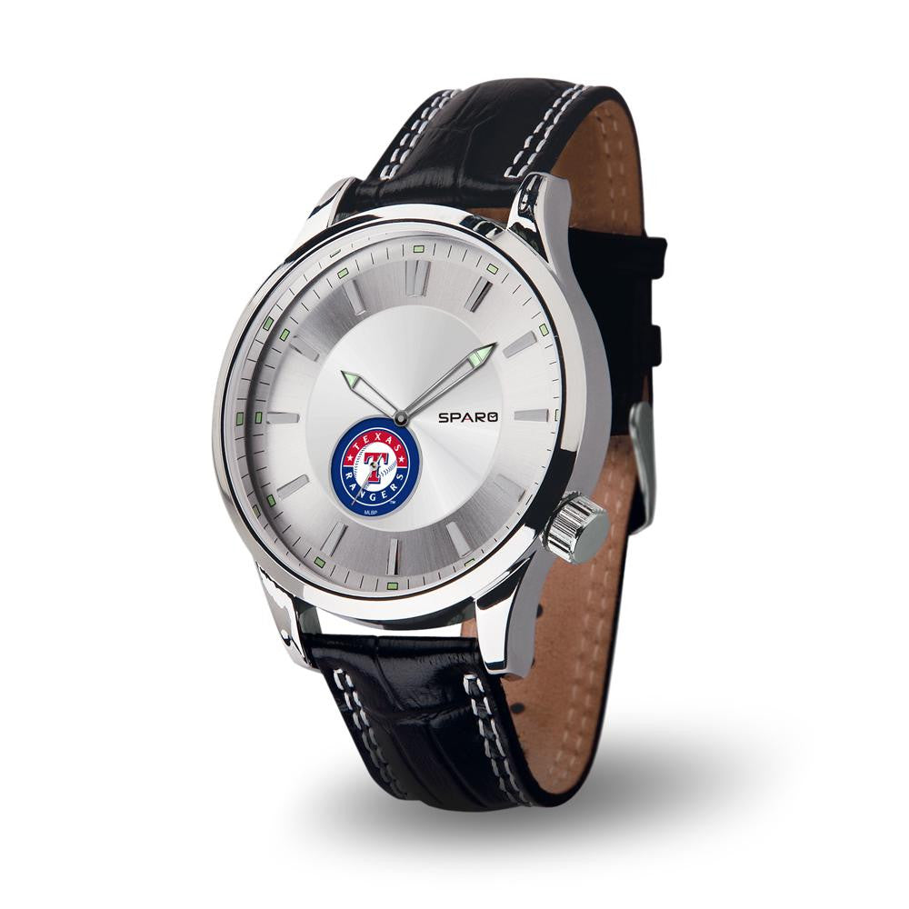 "The new NFL Icon Series watch from Sparo features a genuine leather double contrast stitched padded strap with sports buckle. Each of these elegant watches also features a scratch resistant mineral crystal lens, quartz movement with sub second dial, applied indexes on a steel dial with points of fluorescents and sliver fluorescents hands and a high quality stainless steel case. The watch also is shock and water resistant (3ATM), is officially licensed and has a limited lifetime warranty."