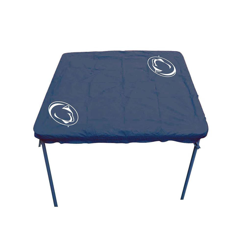 A great way to turn your ordinary card table into the centerpiece of your tailgate. Fits standard 34 x 34 card table. Made from polyester material for easy hand cleaning. Elastic band around perimeter hold cover firmly in place