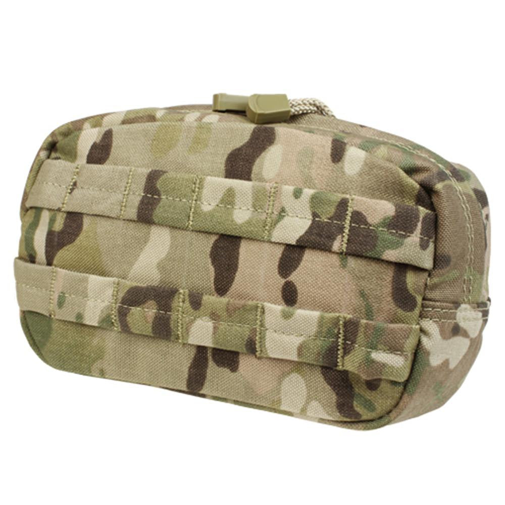 "Pouch with two rows of MOLLE webbing. Mounts directly onto tactical vests, plate carriers, or leg platforms. Large size can be used to carry a variety of essential items. Size: 4.5H x 8.5W x 3.5D."