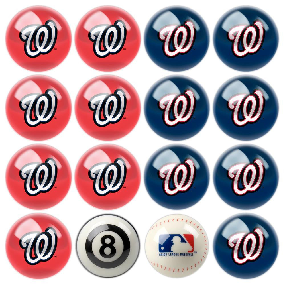 This MLB Home Vs. Away Pool 8-Ball Set brings the game from the grid-iron to your pool table! All MLB team logos and colors are precisely reproduced onto each Belgian Aramith Billiard Ball. Belgin Aramith balls are considered the finest in the industry and have been the BCA's billiard ball sets of choice for decades. Makes a unique gift for the NFL fan in your life. Features true Belgian Aramith 2 1/4 tournament quality billiard balls (finest in industry) 7 balls designed in primary team colors with team logo 7 balls deigned in secondary team colors with team logo traditional white cue ball is updated with an MLB logo 8-ball displays referee-style stripes and digitally reproduced team graphics to reduce fading or cracking. PLEASE NOTE: These balls are designed for games such as 8-ball that uses just solids and stripes. There are no numbers on the balls.