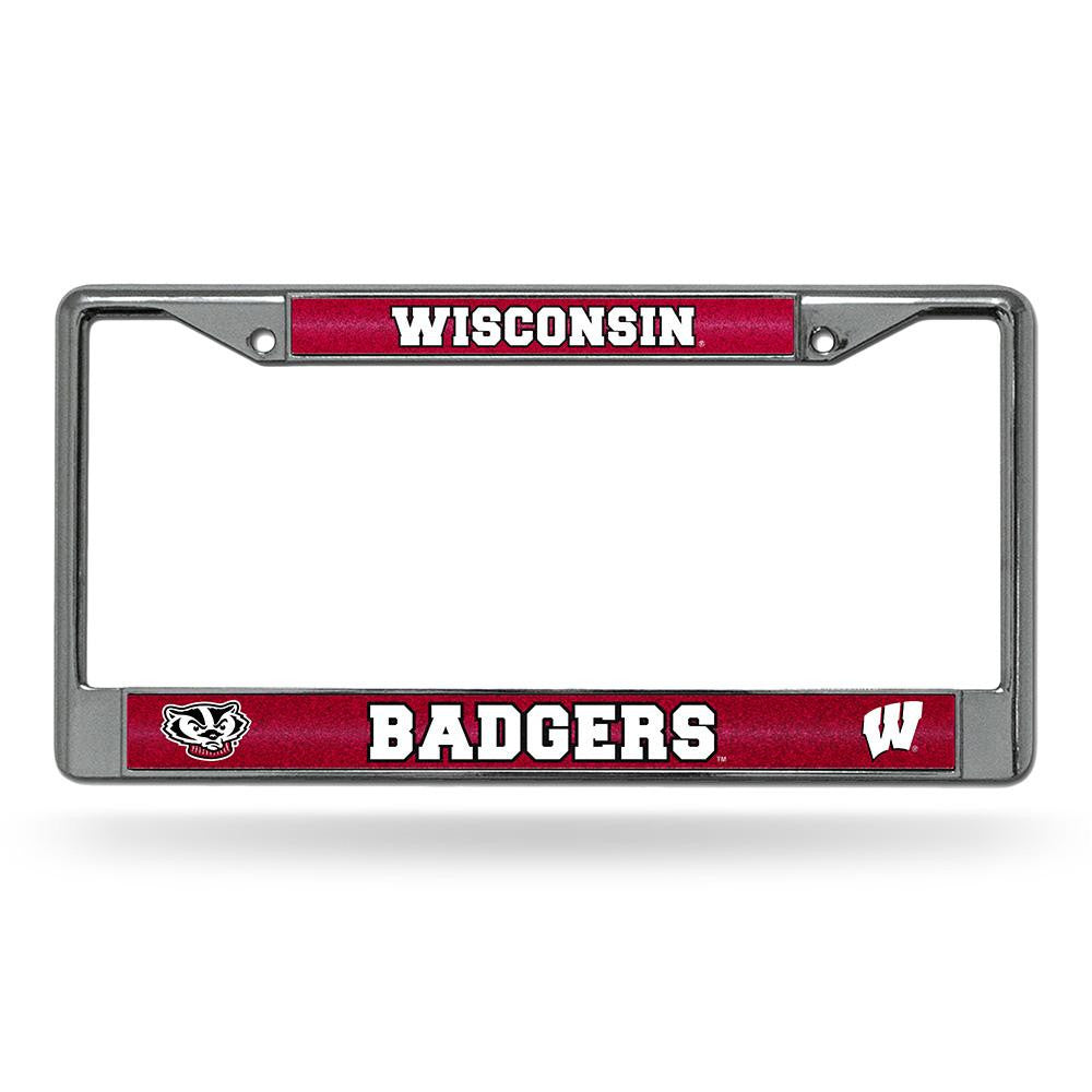 Wisconsin Badgers NCAA Bling Glitter Chrome License Plate Frame