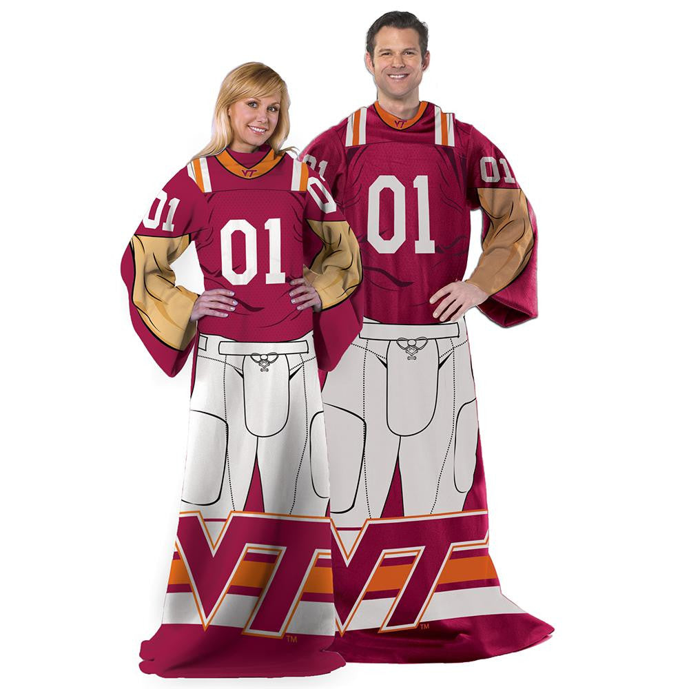 Virginia Tech Hokies NCAA Adult Uniform Comfy Throw Blanket w- Sleeves